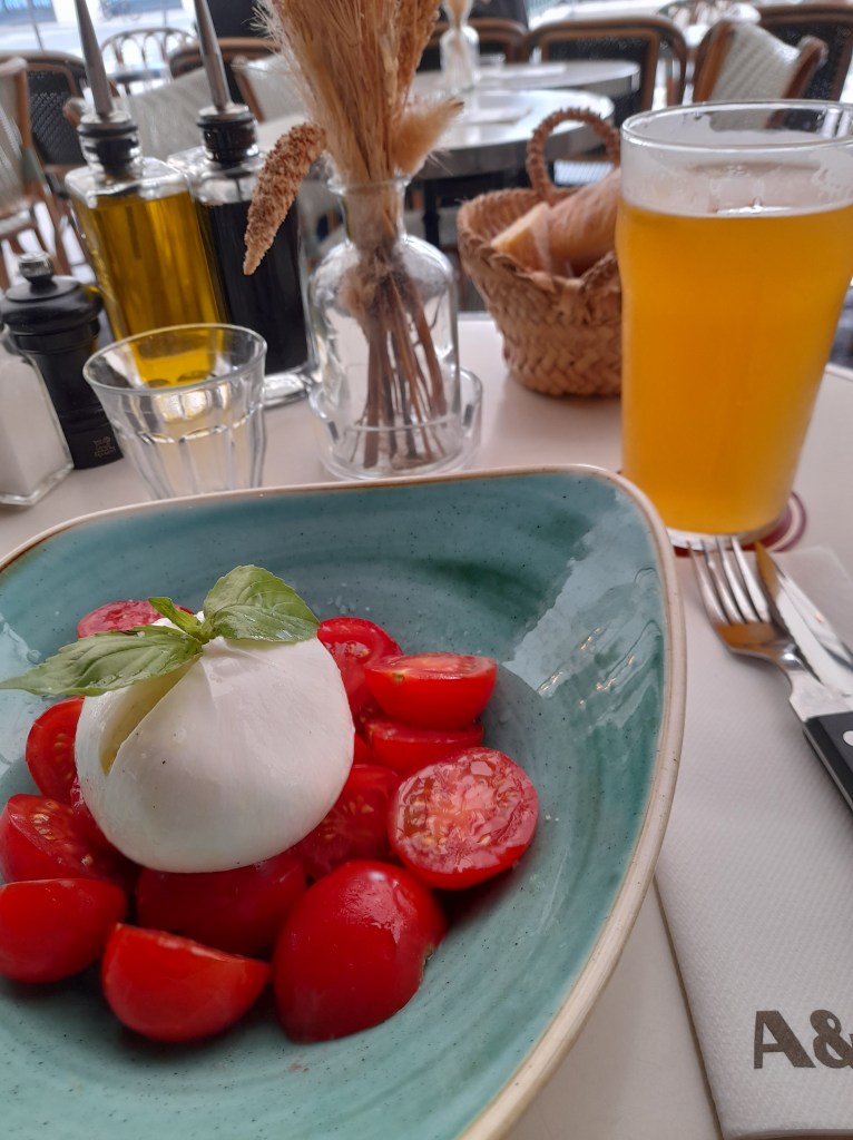 Après la sortie du musée, j’ai dégusté une salade de tomates et buratta et une bière blanche dans le même café.